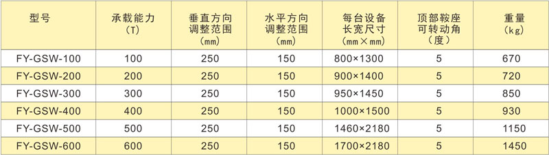 固定型分段三維調(diào)整機技術(shù)參數(shù):